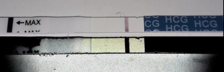 Вчера утром на 11 дпо сделала эви и весь день пыталась понять, что это значит. Вроде ничего не видно, но если затемнить, то что то такое (нижний с затемнением):