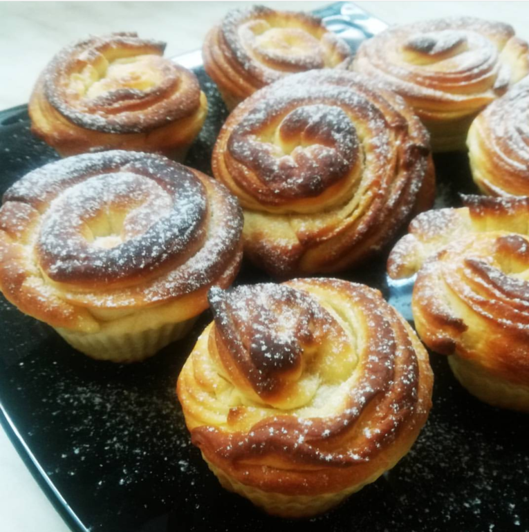 В форму для маффинов выложить краффины. Оставить для расстойки теста на 1 час. Когда краффины увеличатся, можно ставить в духовку. Выпекать 20минут при температуре 200 градусов. При желании остывшие краффины можно посыпать сахарной пудрой.