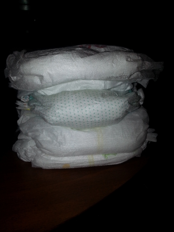 Взяла меррисы и на пробу маленькие пачки Памперс, Либеро (к слову, большая пачка Памперс 1200). Пришла домой, сравнила с Гунами визуально и наощупь. Грустно.