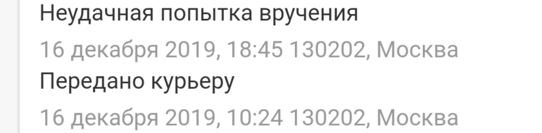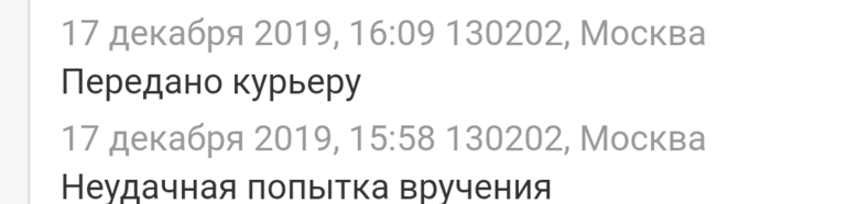 Наступает 17.12 вновь никто не звонит и вновь статус неудачного вручения