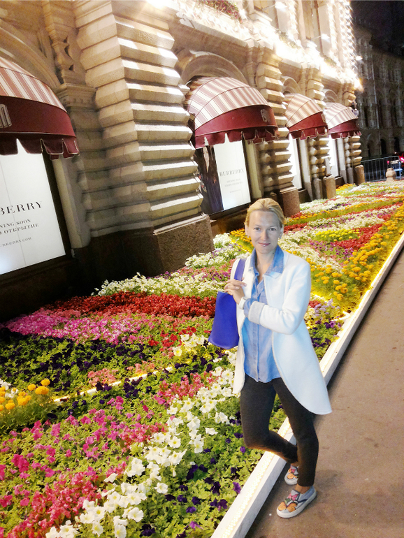 В каком же красивом городе мы живем! На Красной площади вокруг ГУМа высалили цветы, всюду яркая подсветка. На Камергерском и Кузнецком вовсю кипит ночная жизнь, не нашли ни одного свободного столика. Но и просто прогуляться с любимым за руку - большой удовольствие.