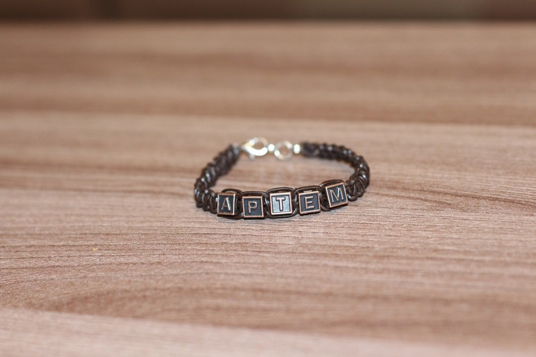 Попутно еще сплелся браслетик для Тёмки. Он как-то увидел на площадке в парке Горького браслеты у девочки и мальчика, резиновые вроде, загорелся, просил долго, чтобы я ему купила. Но я не нашла ничего похожего. Полезла в инет, и для меня открылся новый мир! Мир бусин!:))) Уже успела посетить мега-комплекс с товарами для бижутерии на Севастопольской, где 16 этажей))) Поняла, что больше туда ни ногой! Вокруг одни индусы, ничего-то у них нету, того, что мне нужно, буду по почте заказывать. Первый блинчик комом, купила не тот шнур, который нужно, а кожаный у меня порвался и сплела немного не так, но все же для первого раз думаю нормально, И Артём очень долго удивлялся: "Маааам, как ты его сплела?!" Ведь мы с ним в тот день путешествовали за бусами, ох и долгое было путешествие, муторное, он видел запчасти, которые я купила для браслета, а как я его плела- не видел:)