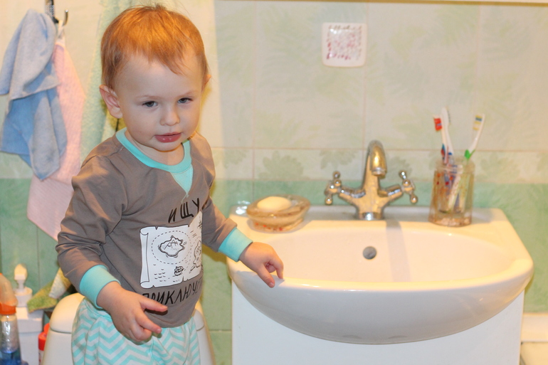 А еще я бы назвала это фото "...наверно это мой рай". Дима дорвался до ванны у мамы в квартире, а в ней все в доступности, и раковина, и унитаз и краны! Краны до дрожи.