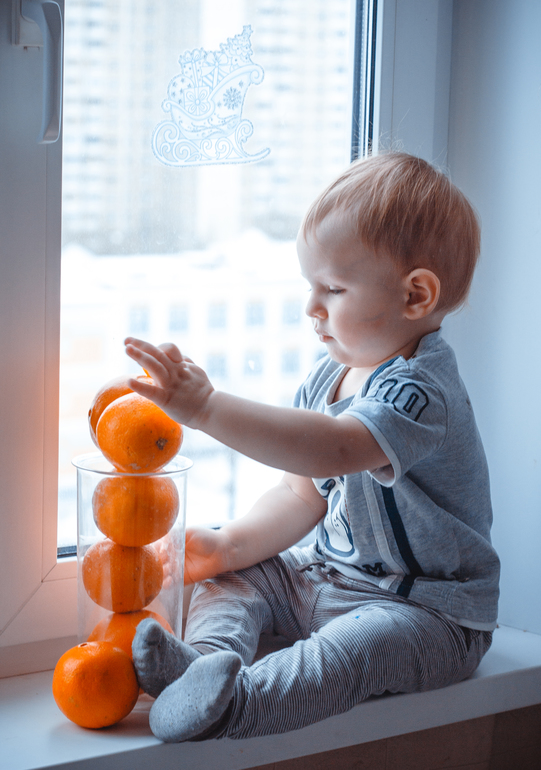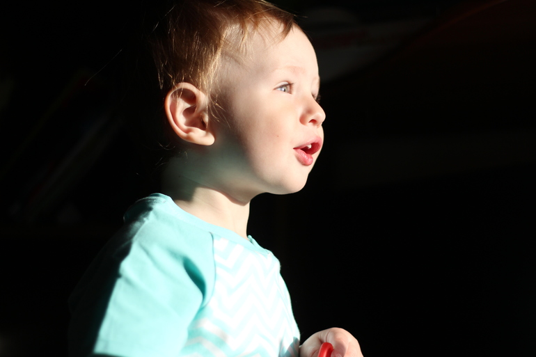 Последнее время у него появилось эмоциональное "эй!", когда ему что-то не нравится, и просто эмоция недовольства в голосе, когда мы что-то не так делаем, как он хочет. Передать словами это невозможно, но это так забавно, что строгость улетучивается сама собой.