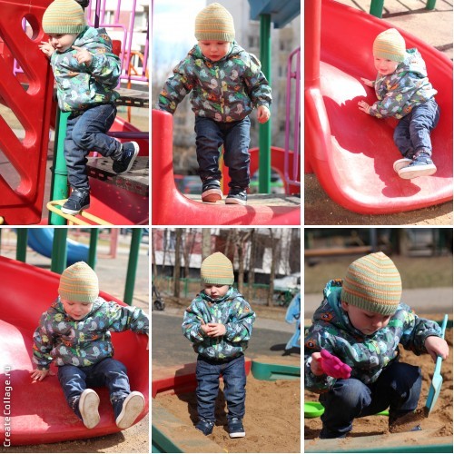 С комплекса не слезает, все время хочет показывать нам "тъюки". А трюки эти ух... Тёмка так делать боится даже. А ведь когда-то мы мечтали, что Тёма на нем сделал хоть что-нибудь эдакое, но Тёмка его долго боялся, вообще был очень осторожен ко всему такому. А Дима... полнейшая противоположность. Я уже задумываюсь, есть ли акробатика где-нибудь поблизости с 2 лет))).