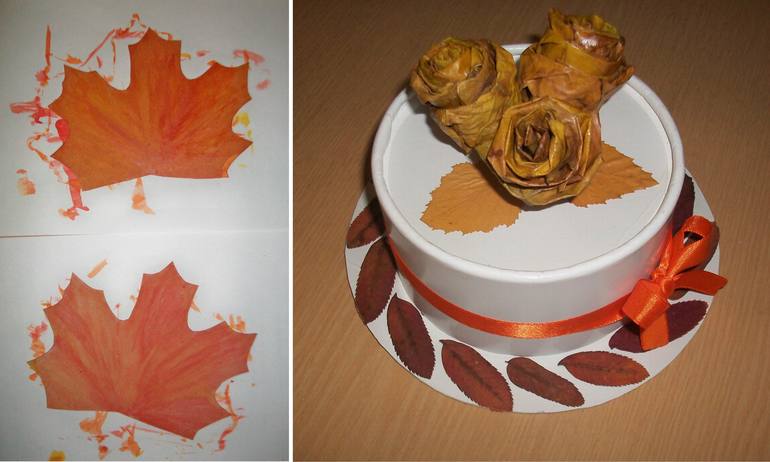 А для садика красили листочки из картона - для осеннего утренника. И я еще сделала осеннюю шляпку на конкурс