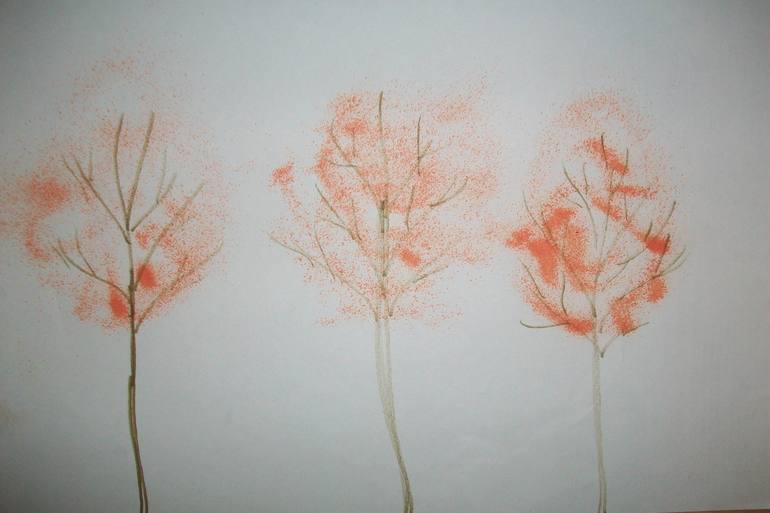 Аппликация "Осень". Я вырезала детали, а сын всё оформлял, глядя на картинку-образец. Еще мы воздушными фломастерами "выдували" осенний лес: