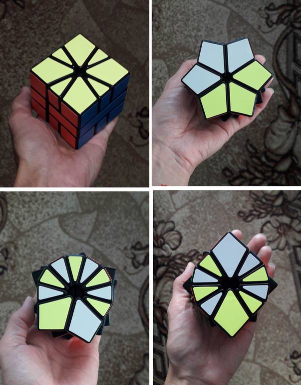 Из игр собирает пазлы, кубики-рубики, играет в денежную игру "Веселый бизнесмен" (в ближайшем будущем планирую подарить ему еще "Монополию"). А вот последний купленный кубик-рубик оказался очень сложным, Максим его так и не освоил, его может собирать только мой брат. Зато какие интересные фигуры из него получаются: