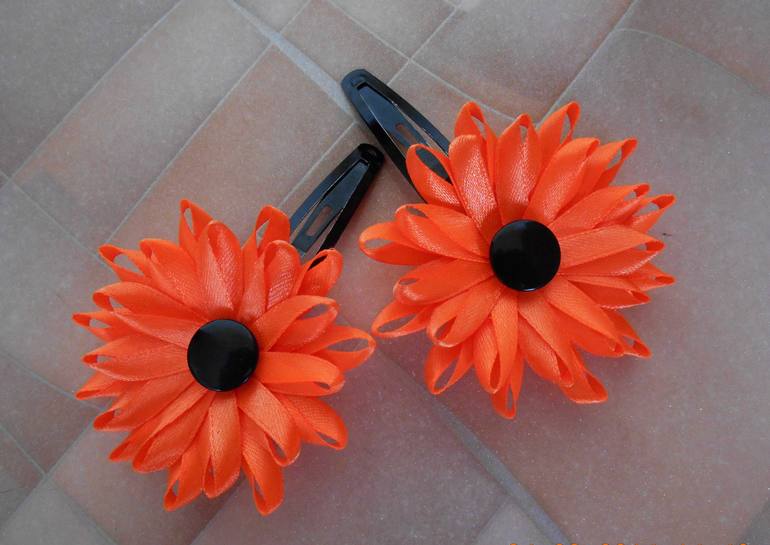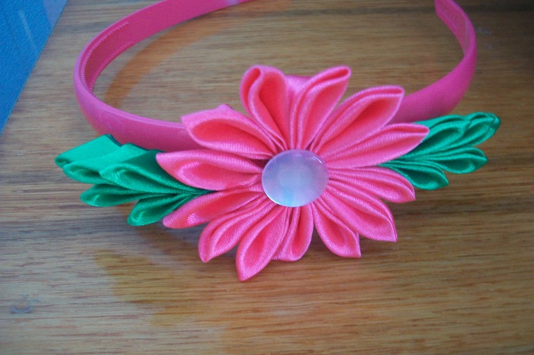 То, что я рукодельница, не знает, наверное, уже только ленивый. Вот и попросили меня сделать какие-нибудь украшения для девочки на день рождения. Ну, а т.к. в последнее время из привычных видов рукоделия меня тянет на что-то новенькое, решила я сделать подарочек в технике канзаши - ободок и 2 заколки. И вот, что из этого вышло:
