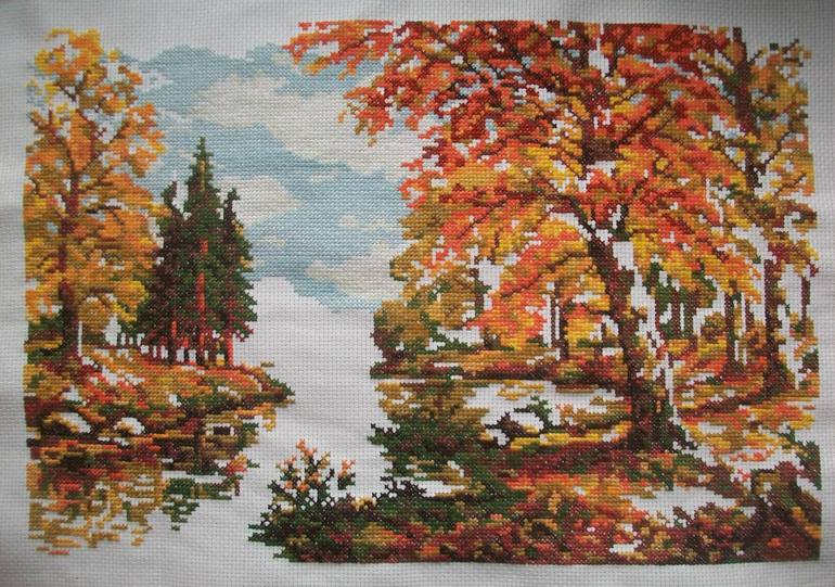Осень уже подходит к концу, вот и я вышивала, вышивала и наконец довышивала свою Золотую осень. Вот какая красота получилась! Смотрю на неё и не налюбуюсь.
