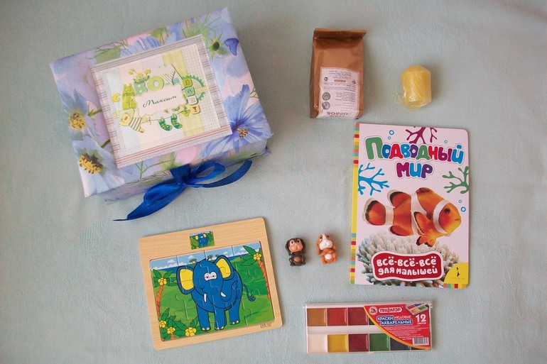 Получила сегодня на почте посылку от Олюшки. Ух, как я давно её ждала! Главным предметом обмена была коробочка для первых вещей сына и блокнот для записей говорилок. Открыли посылку, а там, кроме того, было много прочего интересного