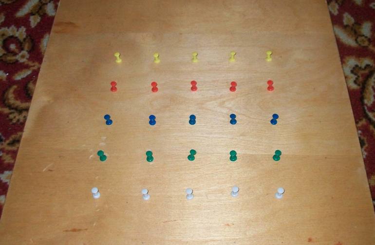 Доска, силовые кнопки + молоток - и вуаля, очередная развивалка для сына готова! Осталось достать резинки и играть