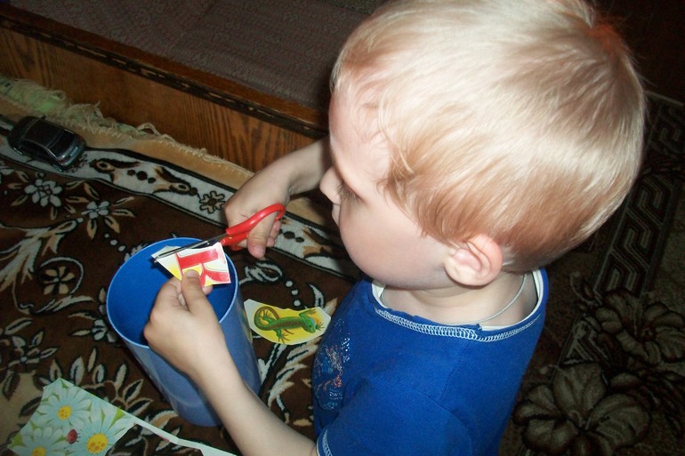 - вырезали контуры. В данном случае в ход пошел алфавит, который мы сняли со стены, чтобы повесить ростомер. Максим вырезал буквы и животных. Еще любит вырезать из истекших календарей цифры из каждого месяца.