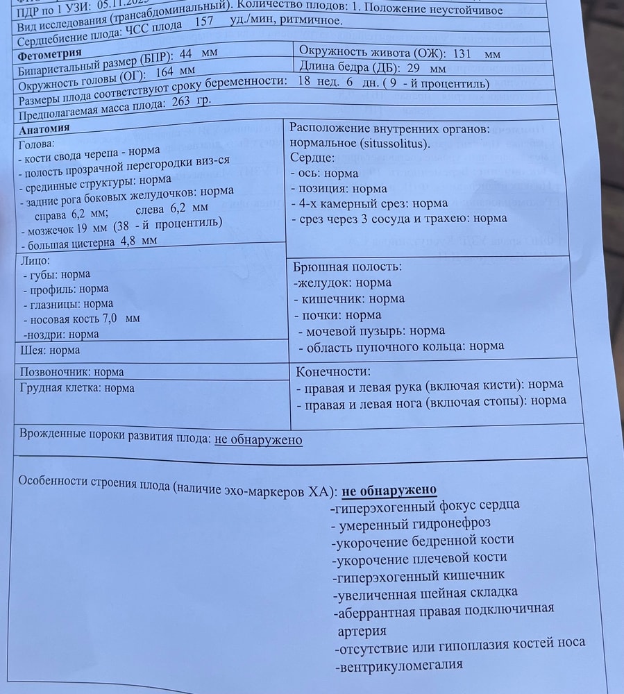Девочки у меня паника!Врач в жк очень напугала😢Вчера прошла скрининг выявили маловесный плод(результаты прикреплю)По месячным вчера было 19.5,а по узи 18.6😢Гинеколог сказала,если начнётся отставание на 3-4 недели ,родоразрешают😭Сказала отставание не зависит от моего питания и генетики(мы с мужем очень маленькие)Девочки,подскажите,как помочь своей малышке добрать вес и догнать срок???