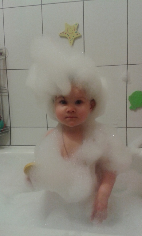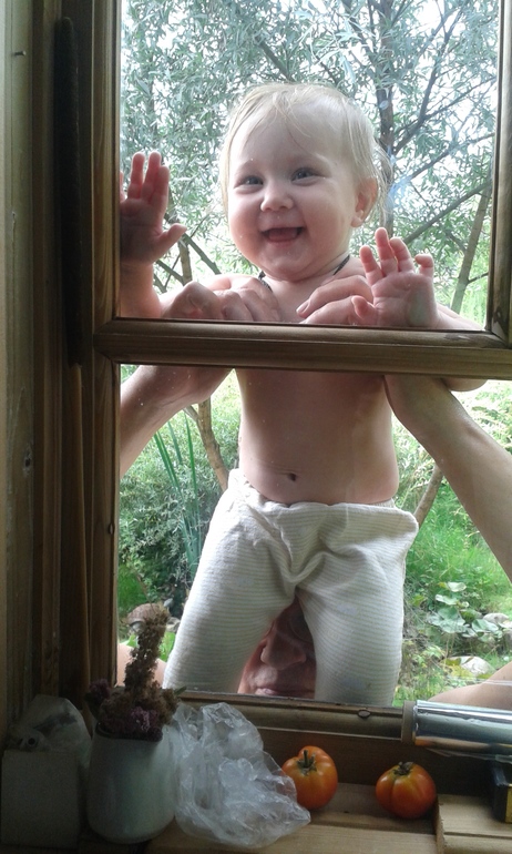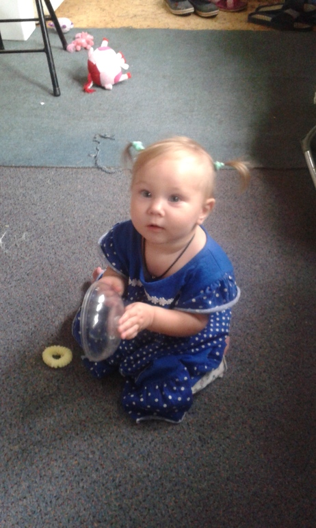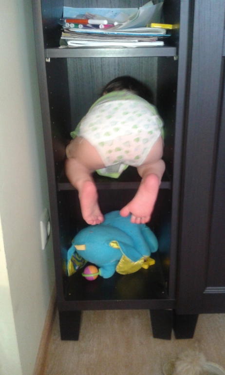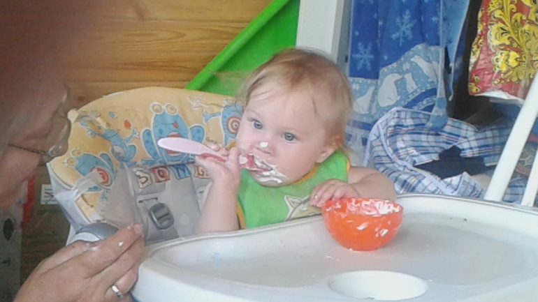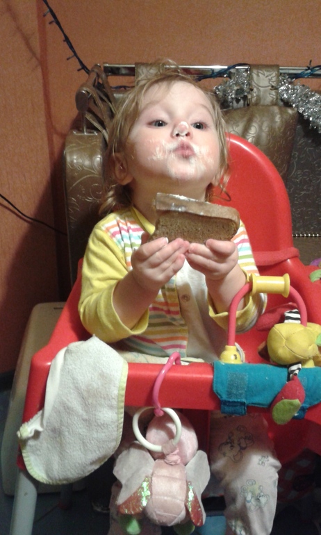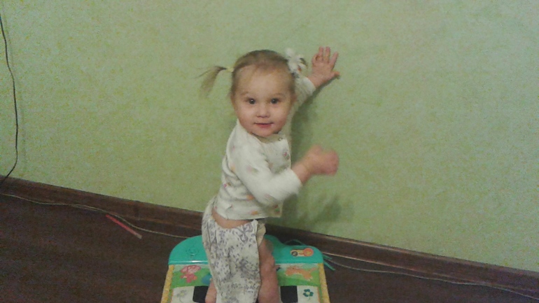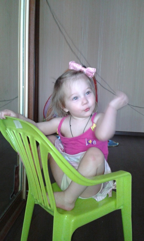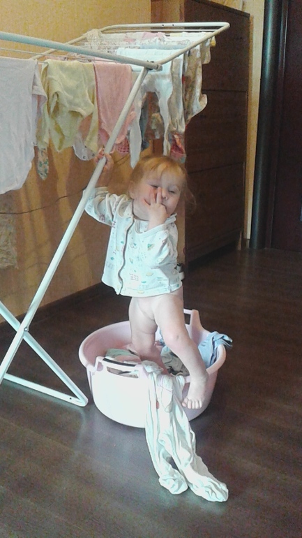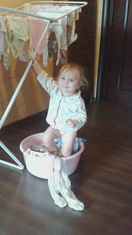 Вот младшей уже 2. Заметно подросла, и не только физически... Юркая, хитрая везде лезет ( и залезает!), где надо стульчик подвинет, где нужно подушку подложить и всё исследует, допытывает, пробует... И все хочет сама-сама-сама. Одеваться, есть, пить, спускать и выносить за собой, открывать, класть, брать, выбирать... И только попробуйте вмешаться... маленький мальчик укажет на дверь - мама иди, иди... Но в то же время ласковая какая,