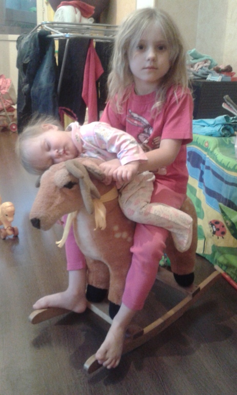 Вот уже старшей 7, вроде большая, а ведь по сути совсем ребенок. Милая , наивная девочка, верящая в чудеса, рисующая целыми днями ( хоть на клочке бумажки в туалете) напролет разных девочек, медлительная и жутко непоседливая, добродушная и ( О ужас) звонкая, словно колокольчик.