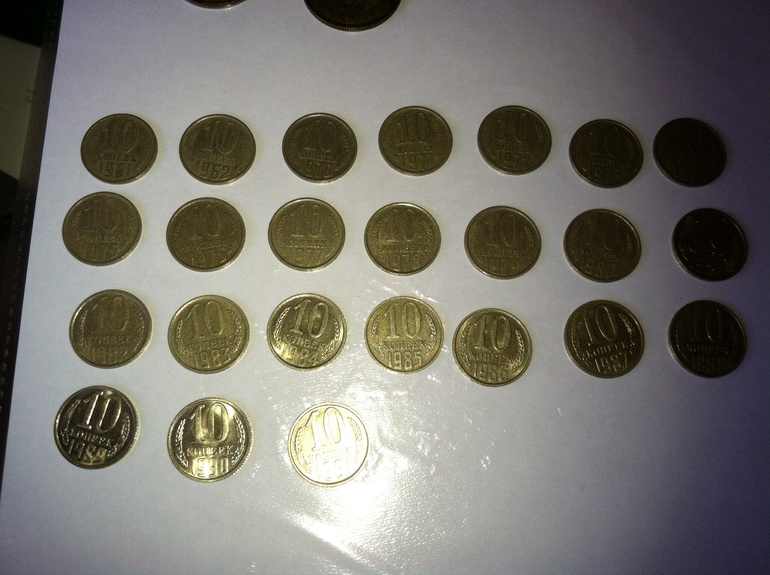 10 коп 1974 - 1 шт 10 коп 1987 - 1шт