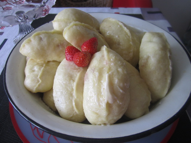 ну тесто самое простое.на 1л.кефира(немного теплого)1 яйцо.щепотка соли и мука( пудов самоподнимающаяся)вместо можно обычную с содой или разрыхлителем.и все.тесто не тугое замешиваем .раскатываю не тонко стаканчиком кружочки вырезаю и все.леплю варенички.а потом на пару 5 минуток..