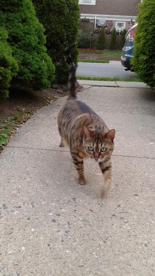 Выспавшись кошка осмотрелась вокруг, поиграла с индюшками, дала понять местному питбулю что она Бенгал , а не какая то там киска, поела, заявила права на хозяиской кошки домик и улеглась там объявив себя королевой.