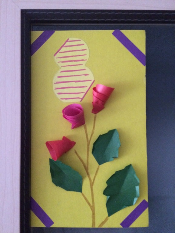 К 8 марта сделали вдвоём с папой открытки - для меня и для бабушки. Делал в основном Дима, потому что сложную работу придумали. Влад клеил разве только. Но вот идей много Владиных: что куда приклеить, какую где отделку сделать, какого цвета. Фантазия работает. :)