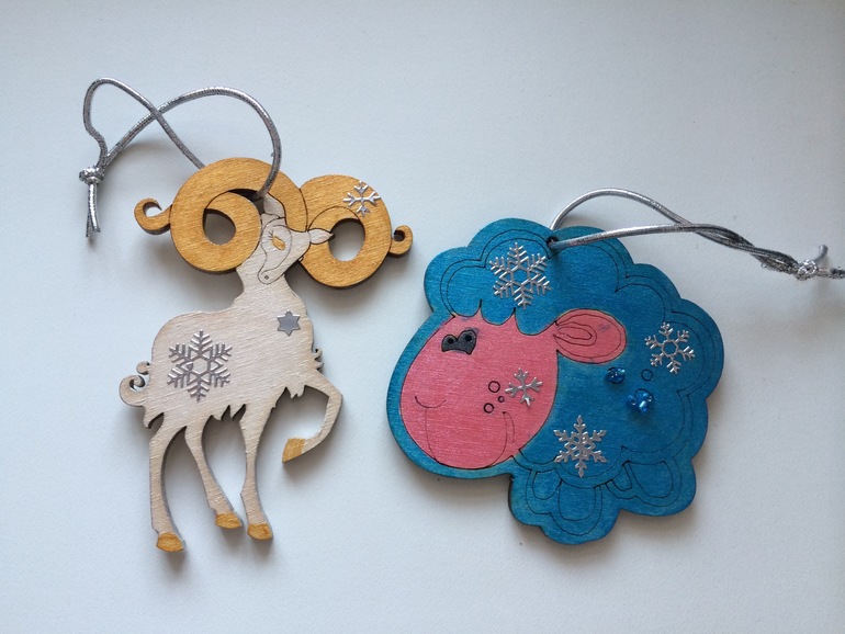 Вот залезла я в фотографии, чтобы припомнить, что мы делали с Владиком в прошлом году. Решила и здесь в дневнике сохранить. В первую очередь мы увлеклись росписью деревянных заготовок акриловыми красками. Получились красивые новогодние игрушки.