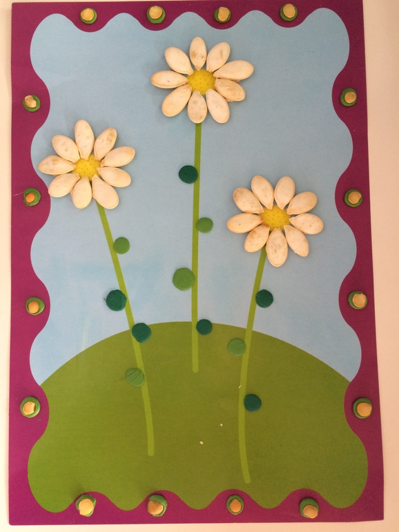 Горох, пластилин, тыквенные семечки. Всю душу из меня вынул, "давай сделаем поделку!" )))))))))))))