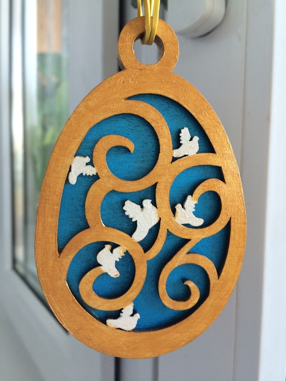 К Пасхе снова расписали деревянные игрушки: яйцо для себя и ангелочка в подарок. Владику однозначно нравится такого рода роспись.