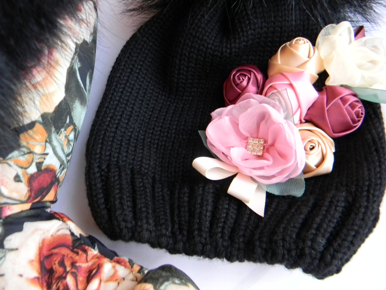 Муки выбора решились в пользу черной шапочки. В самый разгар подготовки к сезону заказывать шапочку под это пальто поздно, очереди большие:( Искать готовое долго. да и в этом году мне меньше все нравится:(( Поэтому решено было купить готовую голышку у одной мастерицы. Помпон позаимствовали у другой шапочки, благо съемный на ленте:) Ну а декор мой...