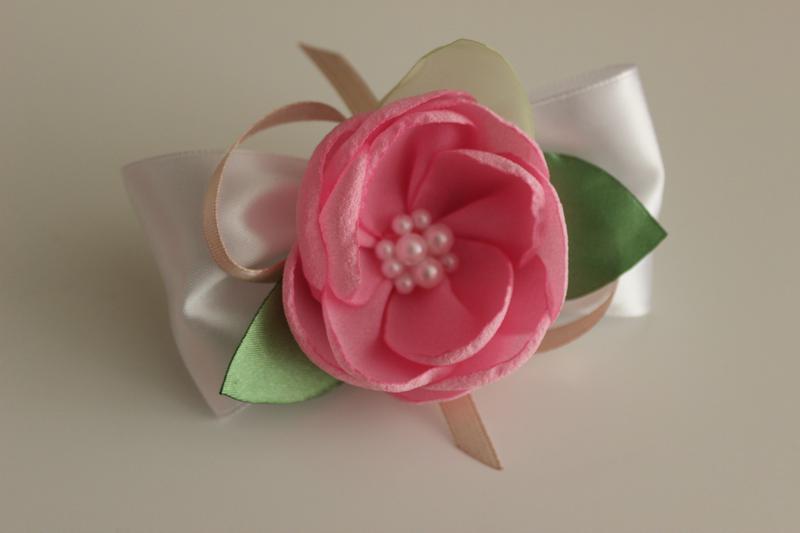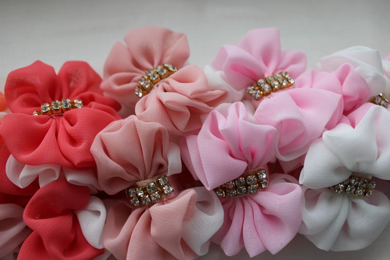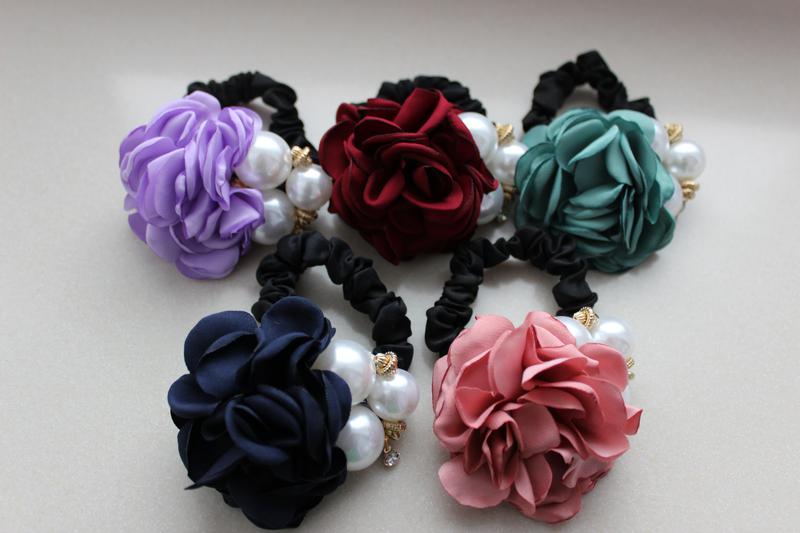 15.Резиночки с цветком и жемчужными бусинами. Украшены маленькой подвеской-стразой. 150 руб./шт.