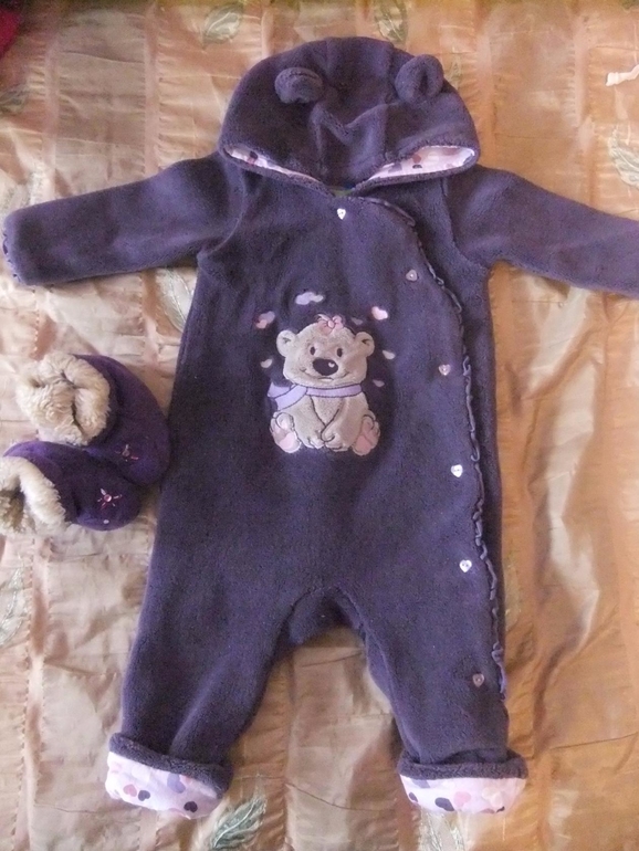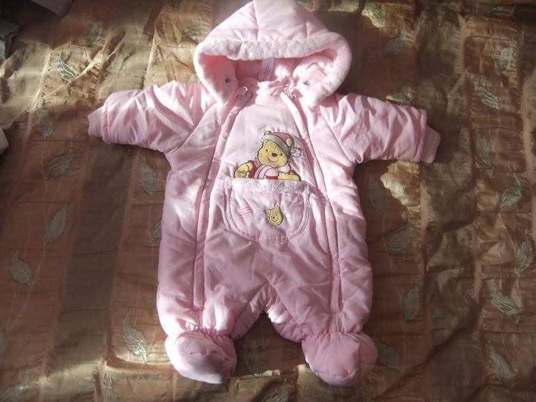 1. размер 62, состояние удовлетворительное (небольшие следы стирки) , экв. 350 р.(с пинетками).