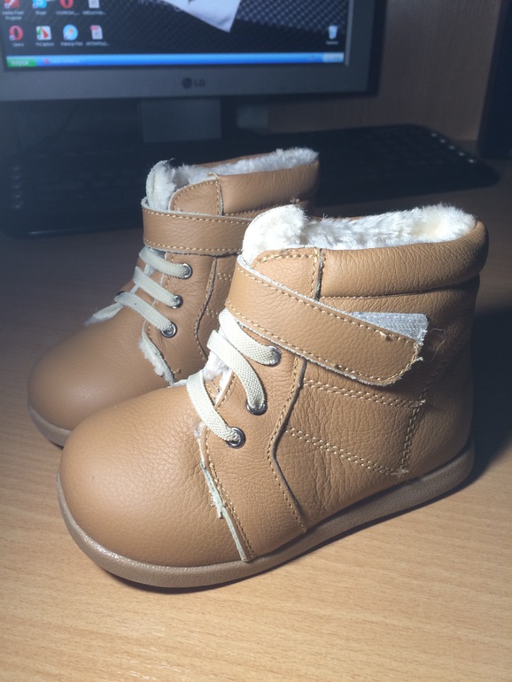 Вот такие вот ботиночки. Кожа натуральная, мех внутри искусственный. Пушится и летит пока во все стороны. Пахнут ботиночки резиной какой-то.