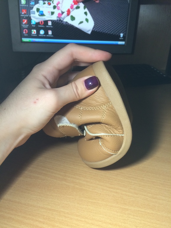 Недостатки, конечно, есть. Проклеены неаккуратно, в шве между осново и подошвой выступает клей. Строчки ровные, но узелки сами видите на фото. У одного ботиночка обнаружила внутри кусок кожи лишний, мог бы натереть. Впереди мех вылезает... В общем, недостатки есть. Но учитывая то, как детки носят обувь, на сезон хватает у нас обычно - цена вполне соответствует качеству, посмотрим еще как будут в носке они. Сегодня пойдем в них гулять