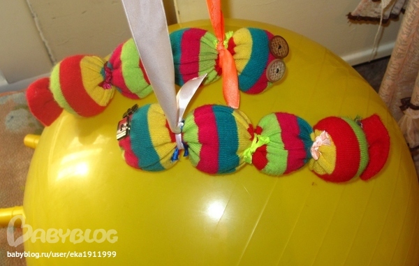 Меня тоже очень вдохновила эта идея, поэтому оставив в стороне не мытую посуду и не стираное белье, я села с детьми шить этих гусениц )))) из маминых носков)