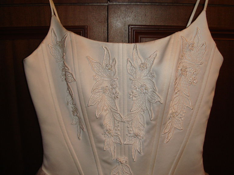 Платье покупалось в свадебном салоне, корсет на шнуровке, на тонких бретелях (на спине очень красиво бретели сделаны в виде буквы V). Платье в отличном состоянии, после химчистки. Одевалось 1 раз в сухую погоду. Размер 44-48 за счёт корсета. Идеально будет на 46 размер. На рост 165-185 см в зависимости от высоты каблука. У меня рост 183 см, на фото я без каблука. Сзади бант, который можно при желании отстегнуть.