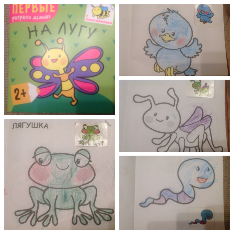Второй день, Сёма находит себе занятие. Вчера папа, показал что наклейка как образец, и Семен подбирать цвета и раскрашивает. Сегодня советовался со мной по цвету для червяка.