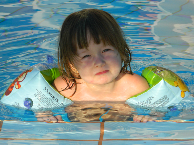 мы только в нарукавниках, потому что она стала у нас сама прыгать во взрослые бассеены с разбега еще в том году, поэтому в этом году мы сразус нарукавниками ))) и в перед ))