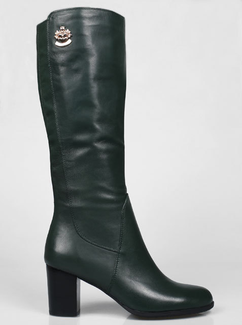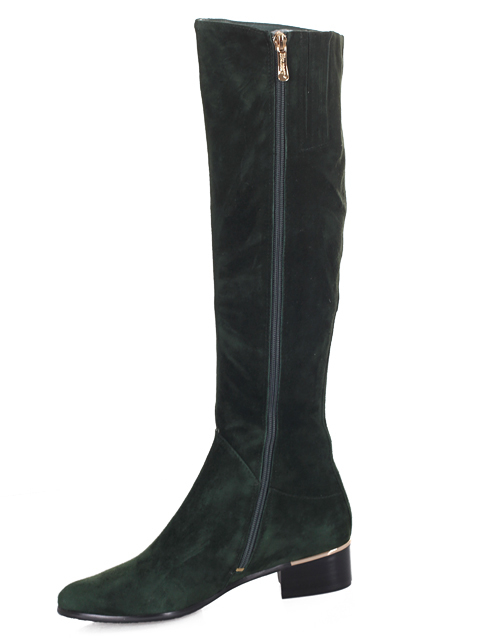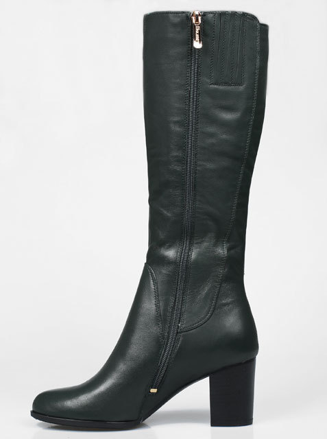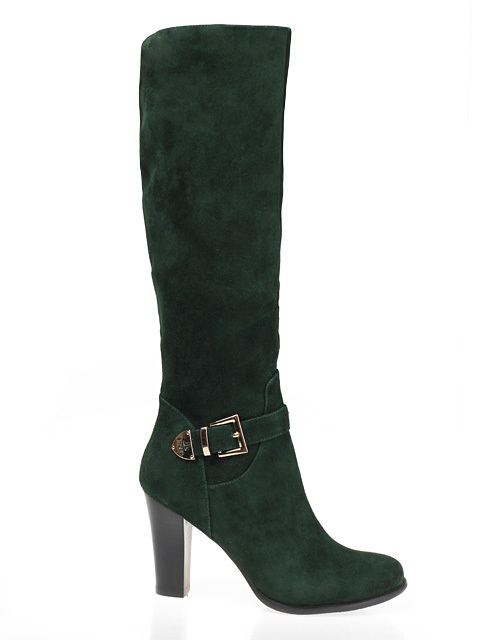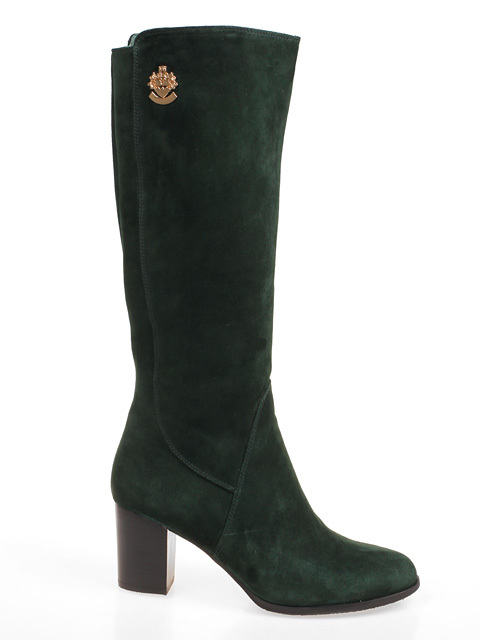 Стильная и удобная модель на устойчивом каблуке,высота каблука около 7 см.Обхват голенища 38 см.Отличный выбор на любой случай.Цвет темно-зеленый.Модель большемерит на 0,5 размера.
