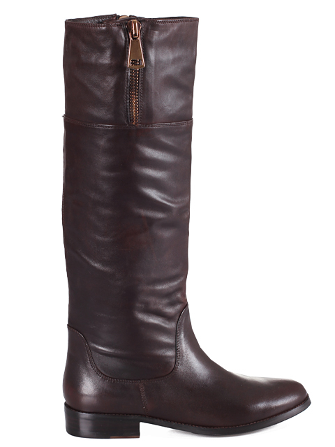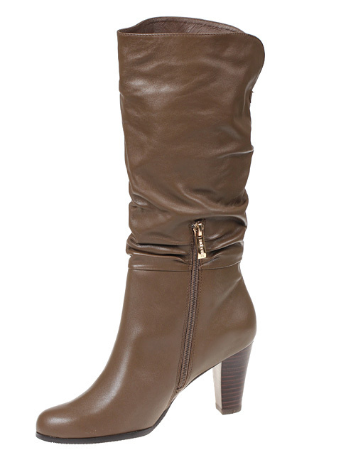 Эффектная моделька,стильное дополнение вашего гардероба.Высота каблука около 8 см.Обхват голенища 37-38 см.Цвет коричневый.