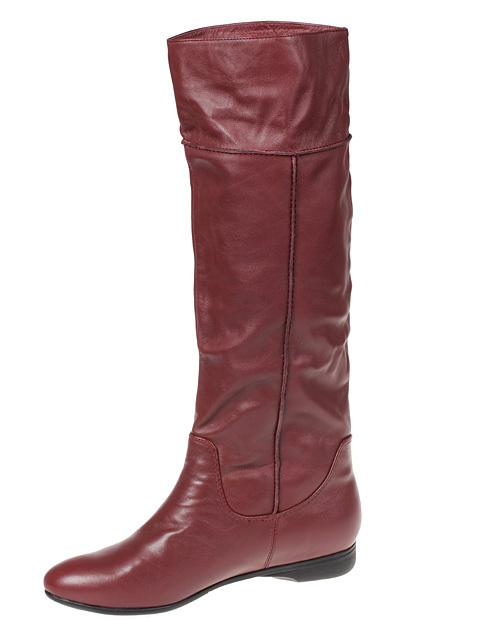 Эффектные сапожки великолепного винного цвета выигрышно смотрятся на ноге.Высота каблука около 3 см.