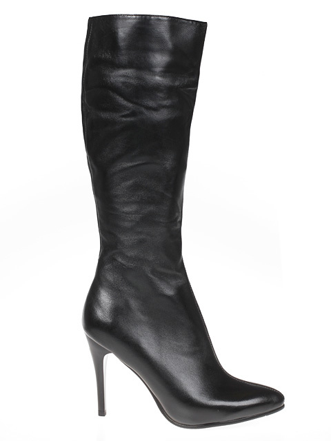 Модель на высоком каблуке. Для удобства обувания с внутренней стороны голенища предусмотрена застежка на молнию.Высота каблука 9 см.