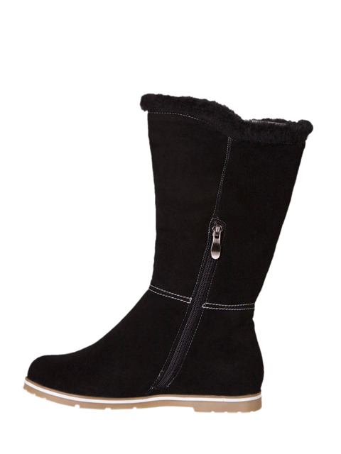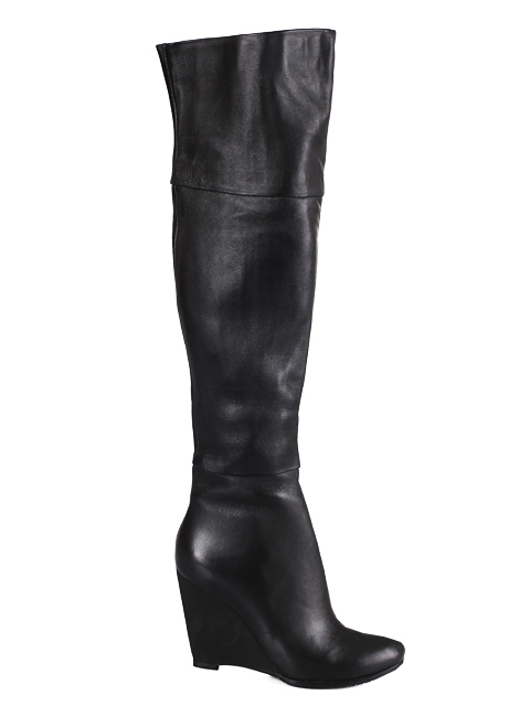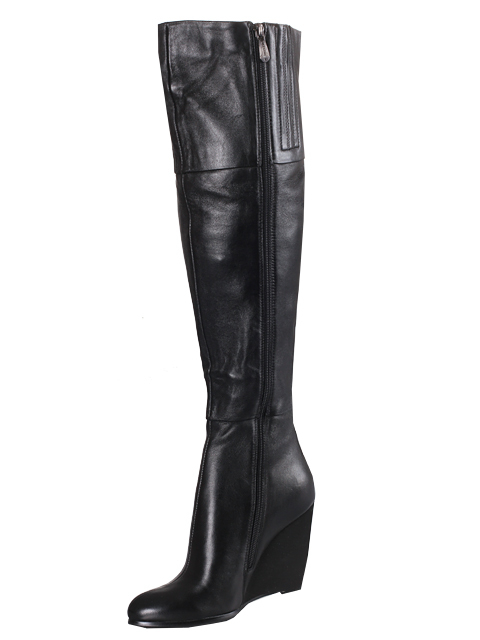 Модель с округлым мыском на устойчивой танкетке. Для удобства обувания с внутренней стороны голенища предусмотрена застежка на молнию.Высота каблука около 11,5 см.
