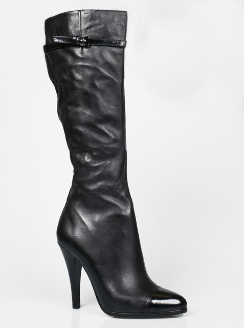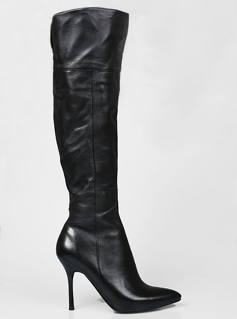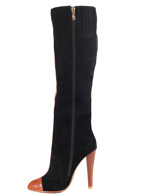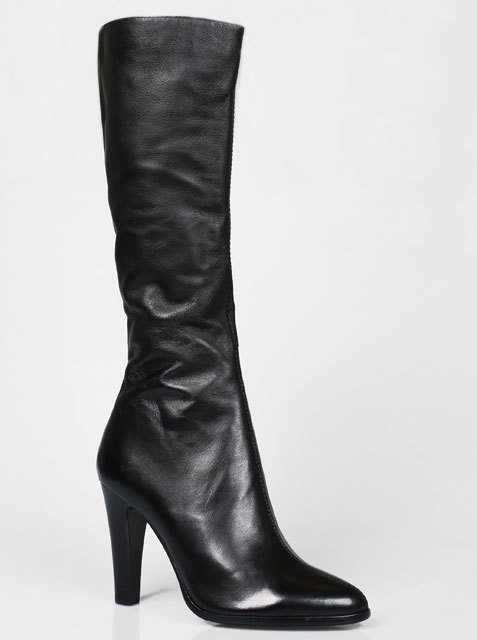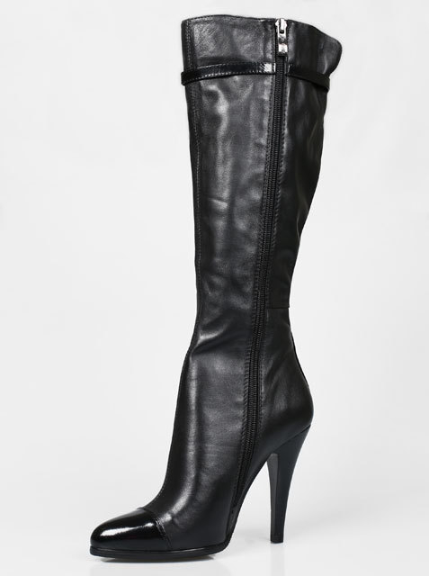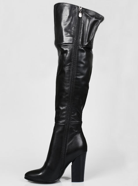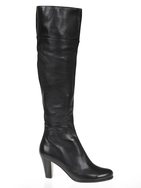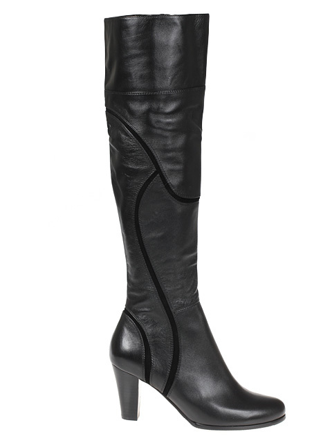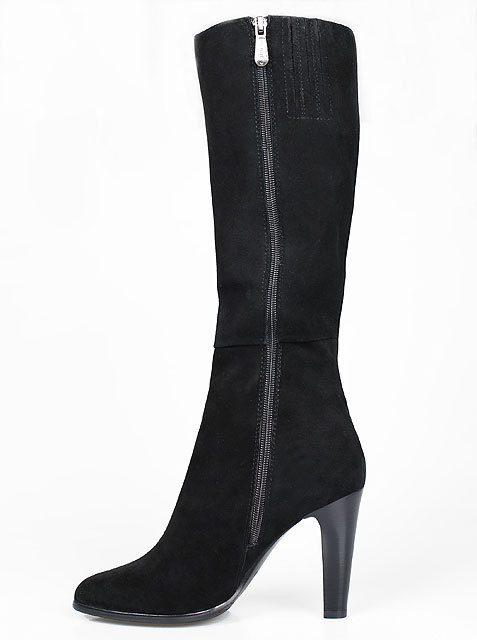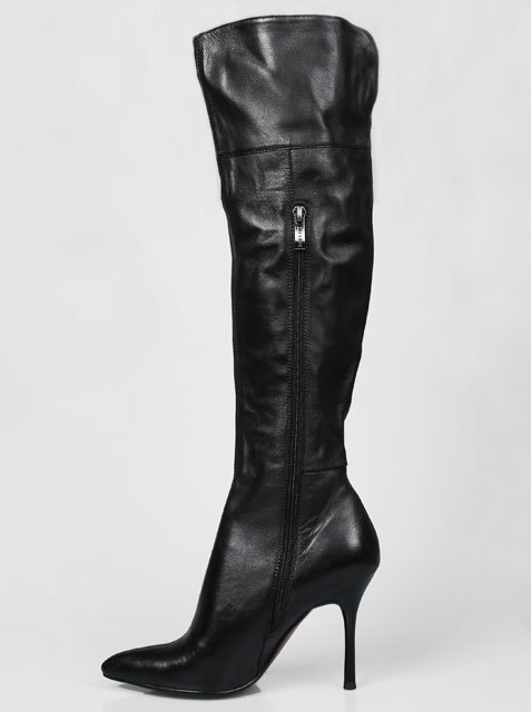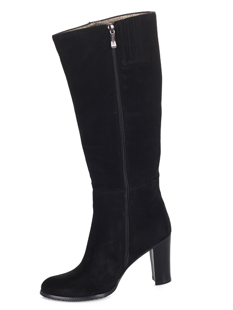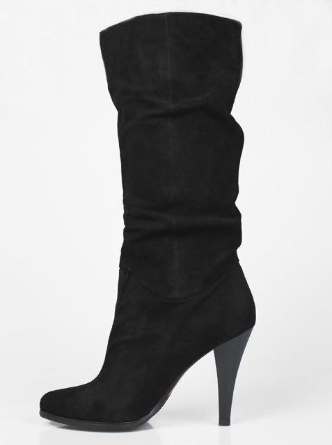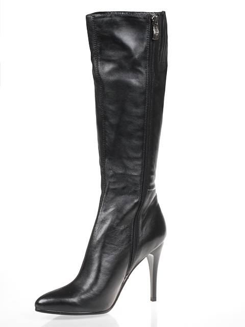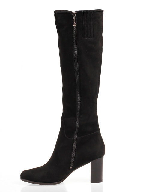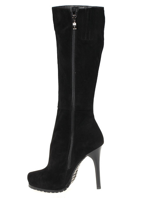 Модель на высоком устойчивом каблуке. Голенище дополнено сзади резинкой. Для удобства обувания с внутренней стороны голенища предусмотрена застежка на молнию.Высота каблука около 9,5 см.