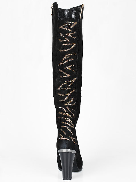 Актуальный дизайн и эффектный декор делают эти сапоги наиболее яркой деталью вашего образа. Модель дополнена устойчивым каблучком.Высота каблука около 10 см.