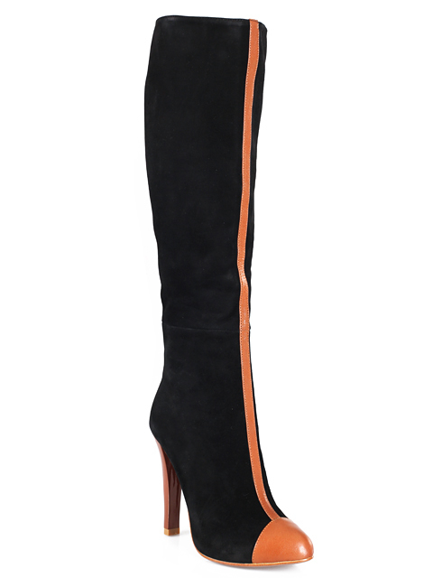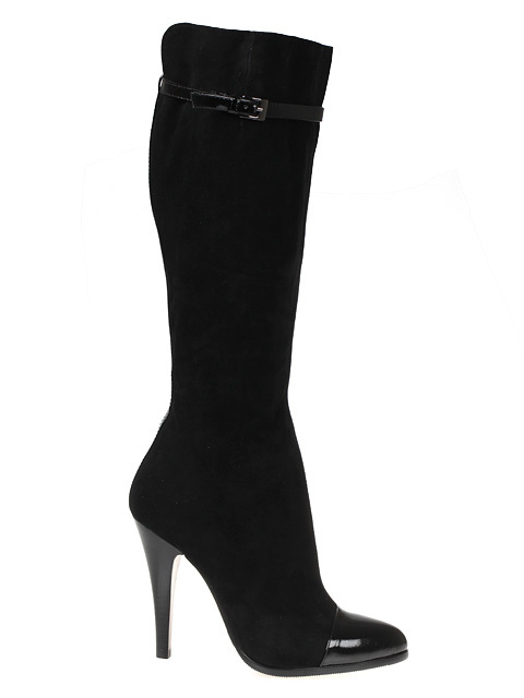 Отличные замшевые сапоги на высоком изящном каблучке. Модель дополнена оригинальным декором.Высота каблука около 10,5 см.
