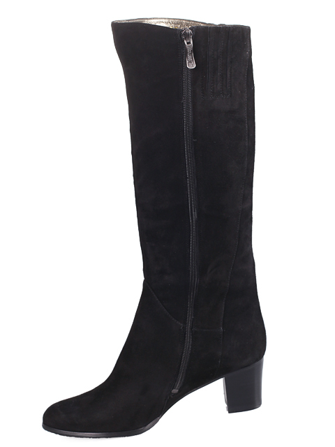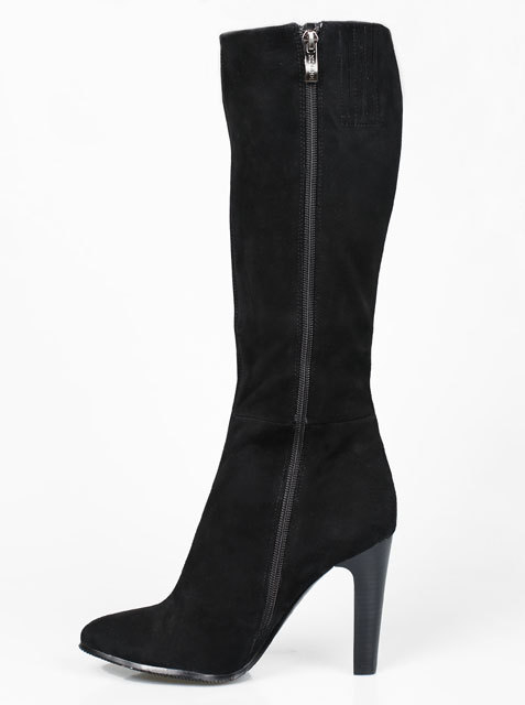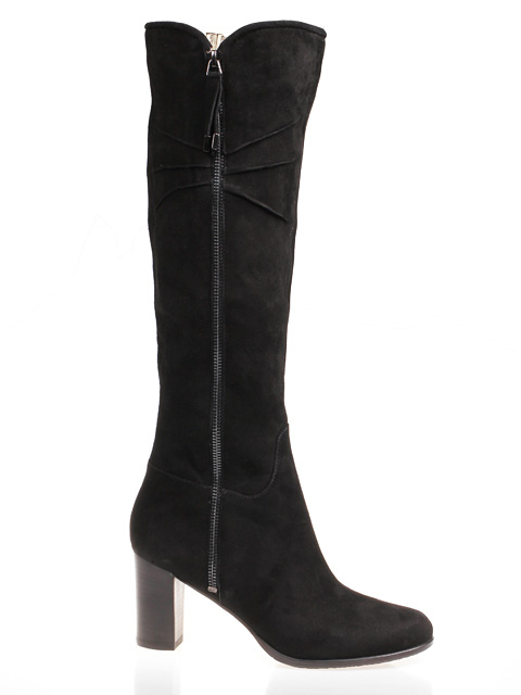 Стильные сапоги из мягкой замши прекрасно дополнят Ваш гардероб. Оригинальное дополнение в виде двух молний (одна с внешней стороны, другая с внутренней).Высота каблука около 7 см.