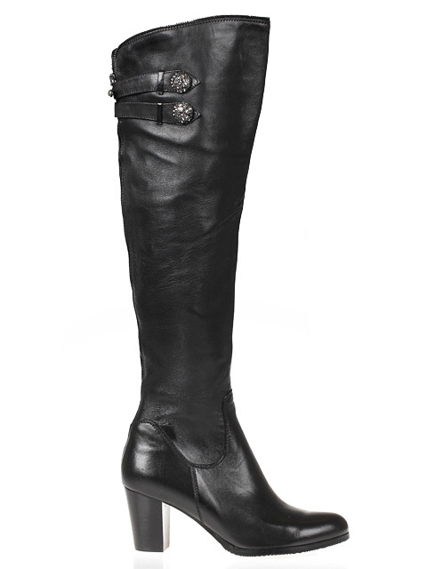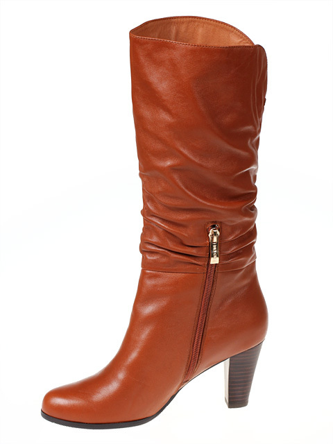 Модель на устойчивом каблуке Голенище декорировано,для удобства обувания с внутренней стороны голенища предусмотрена застежка на молнию.Высота каблука около 7 см.Обхват голенища 37-39 см.