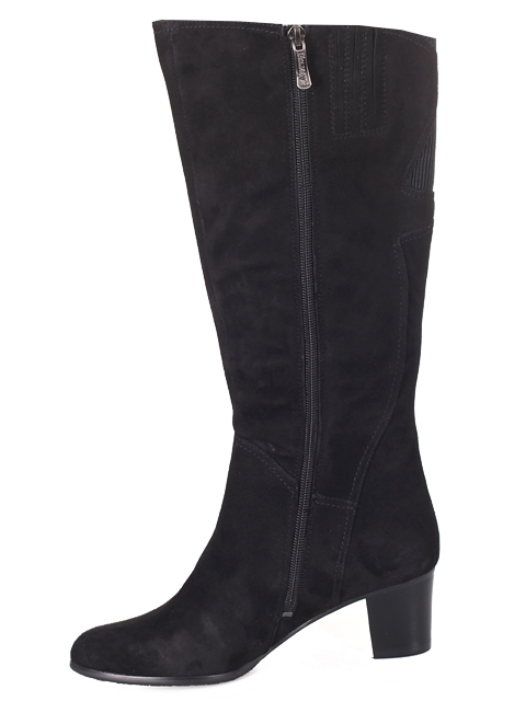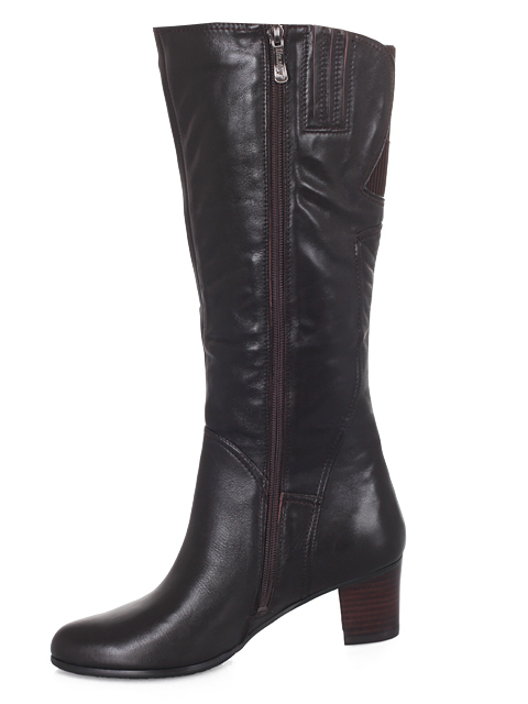 Модель с боковой застежкой на молнию, на удобном, устойчивом каблуке. Вверху голенище дополнено резинкой.Высота каблука 5,5 см.