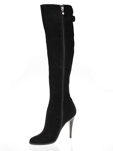 Стильные высокие сапоги из натуральной замши - это прекрасный вариант для прохладной погоды. Высокий изящный каблук придает образу особый шарм.Высота каблука около 11 см.