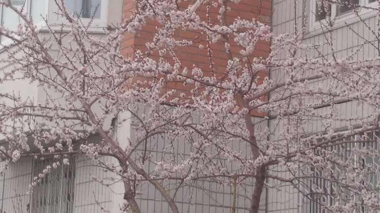 Я сегодня узнала, что это абрикосы цветут, тоже очень удивилась, на дереве ни листочка, одни цветы.