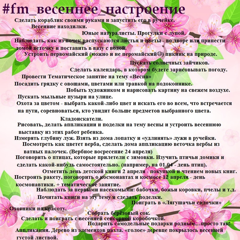 Я для нас с Ванюшкой составила (кое-что из интернета, что-то придумала сама) список из 30 дел, которые надо обязательно выполнить весной.